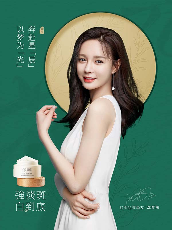 近期,谷雨美白奶罐正式宣布沈夢(mèng)辰為谷雨品牌摯友。