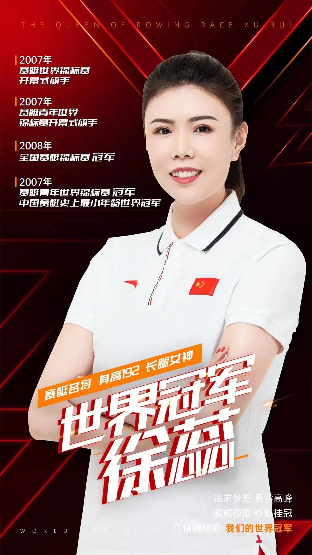 6-賽艇世界冠軍徐蕊7-拳擊世界冠軍李金子8-短道速滑世界冠軍徐可欣9-短道速滑世界冠軍陳光10-體操世界冠軍姚金男11-世界體操冠軍周卓如12-跆拳道冠軍侯玉琢13-女排世界冠軍喬婷14-體操世界冠軍呂博15-藝術(shù)體操世界冠軍舒思瑤16-體操亞洲冠軍劉后17-短道速滑全國冠軍王珊紅18-體操全國冠軍朱桑桑19-健美操全國冠軍吳佳羽